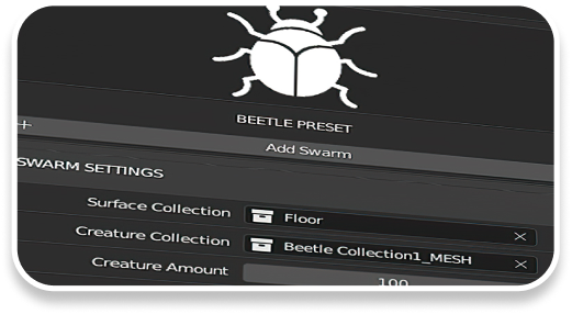 Influence your swarm of with features like attraction, avoidance, follow curve, and more, giving you powerful ways to control their behavior and movement.