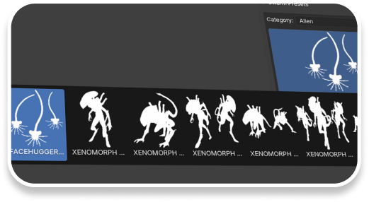 Recreate iconic alien scenes with the Alien Collection. Generate swarms of Xenomorphs and Facehuggers, spread Alien Eggs, and drag-and-drop fully animated models for instant scene building. No animation experience required—just unleash your creativity and effortlessly bring iconic alien moments to life with ease.